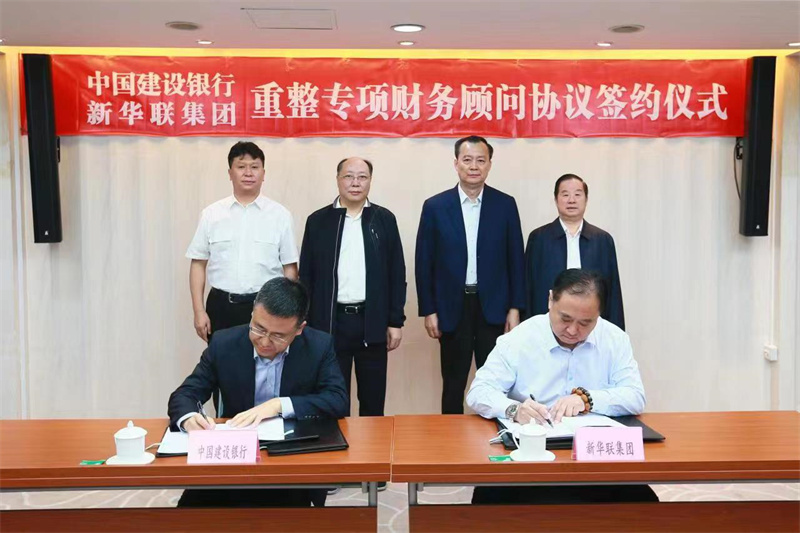 6月13日上午,中國建設(shè)銀行與新華聯(lián)集團(tuán)在全國工商聯(lián)機(jī)關(guān)大樓簽訂重整專項(xiàng)財(cái)務(wù)顧問協(xié)議。全國工商聯(lián)副主席黃榮,中國建設(shè)銀行黨委副書記、監(jiān)事長(zhǎng)王永慶,黨委委員、副行長(zhǎng)王浩,新華聯(lián)集團(tuán)董事局主席兼總裁傅軍出席簽約儀式,簽約儀式由全國工商聯(lián)副秘書長(zhǎng)、經(jīng)濟(jì)服務(wù)部部長(zhǎng)林澤炎主持。建設(shè)銀行北京分行行長(zhǎng)林朝暉、新華聯(lián)集團(tuán)高級(jí)副總裁馮建軍分別代表雙方簽署協(xié)議。